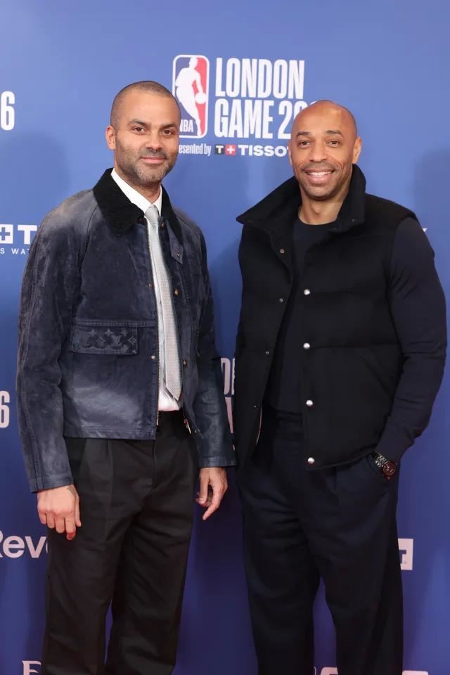 除赖斯外,多位英超球星现身看台。范戴克到场,赖斯的阿森纳队友萨利巴同样在列。阿森纳传奇亨利与法国同胞、马刺名宿托尼-帕克并肩出现,赛前范戴克还被拍到与亨利轻松交流。